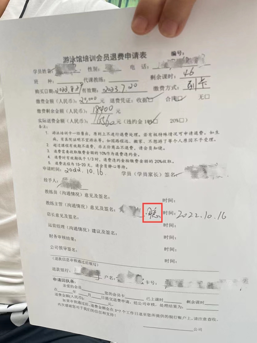 本人于2022年9月28日在該商家處花費20000元購買50節私教課。使用了4節私教課后,因個人工作調動離開深圳,無法繼續使用剩余的46節私教課,故要求商家退還剩余課程費用16560元。