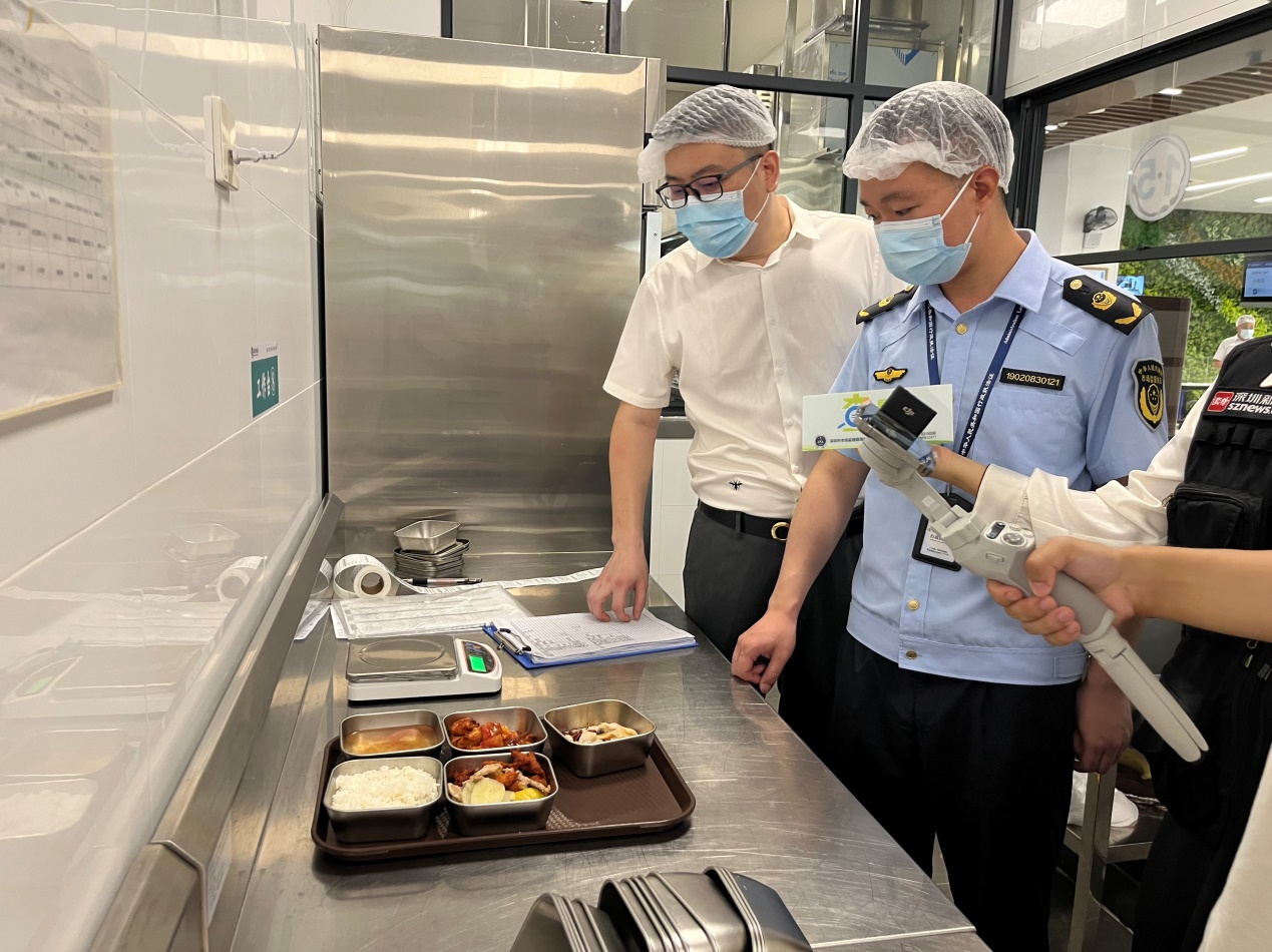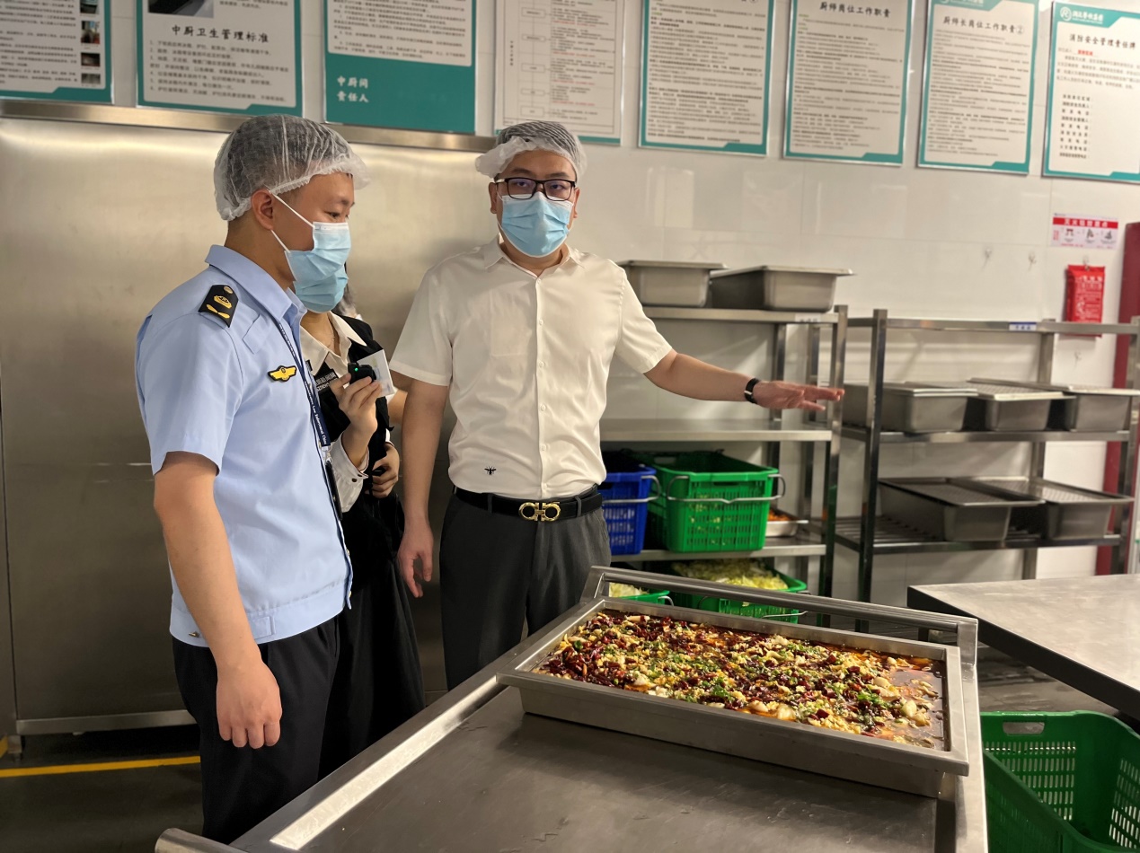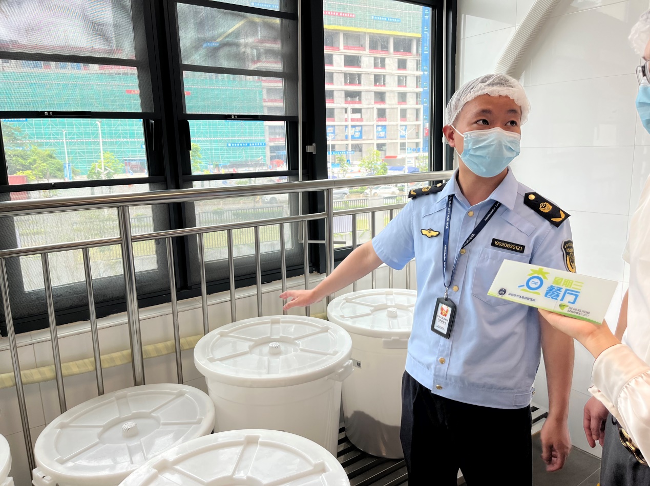 讀特客戶端·深圳新聞網(wǎng)2023年5月24日訊(記者 胡津瑋 袁征一方 曾思達(dá))“星期三查餐廳,讓深圳人吃得更放心。”中考、高考將至,深圳各大中學(xué)成了廣大學(xué)生及家長(zhǎng)關(guān)注的焦點(diǎn)。在選擇升學(xué)學(xué)校時(shí),學(xué)生和家長(zhǎng)們除了關(guān)注學(xué)校師資和教學(xué)質(zhì)量,還特別關(guān)心校園食品安全。為此,5月24日上午,“星期三查餐廳”陽(yáng)光執(zhí)法行動(dòng)走進(jìn)位于坪山區(qū)的深圳實(shí)驗(yàn)學(xué)校高中園,對(duì)深圳實(shí)驗(yàn)學(xué)校崇文高中食堂進(jìn)行突擊檢查。經(jīng)查,該食堂整體情況較好,量化評(píng)級(jí)維持A級(jí)。