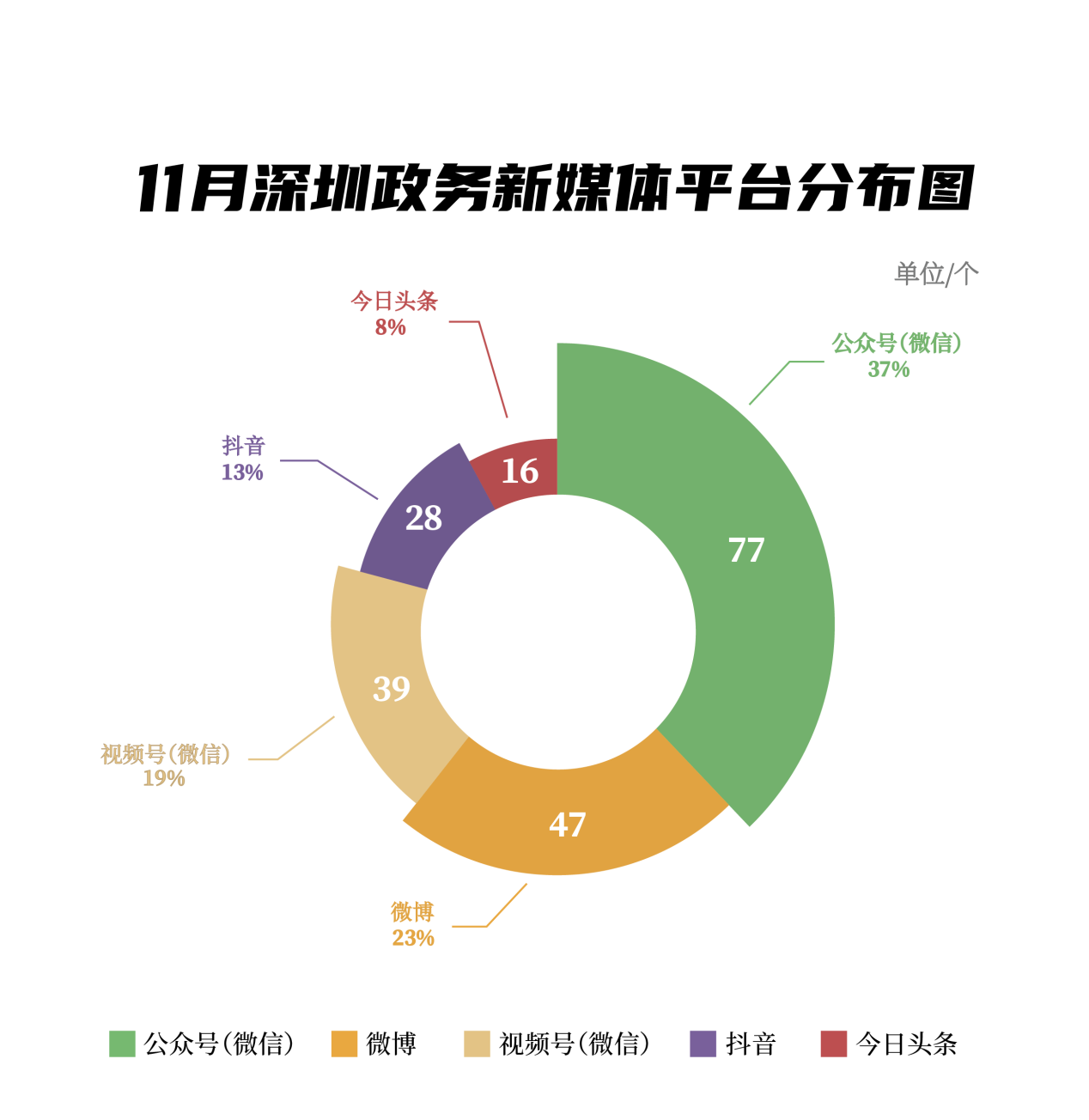 《深圳優(yōu)秀政務(wù)新媒體矩陣》將深圳黨政機(jī)關(guān)、企事業(yè)單位開設(shè)的政務(wù)公眾號(微信)、微博號、抖音號、視頻號(微信)及頭條號按照發(fā)布指數(shù)、互動指數(shù)、傳播指數(shù)三項指標(biāo)進(jìn)行綜合評價,最終形成優(yōu)秀名單。