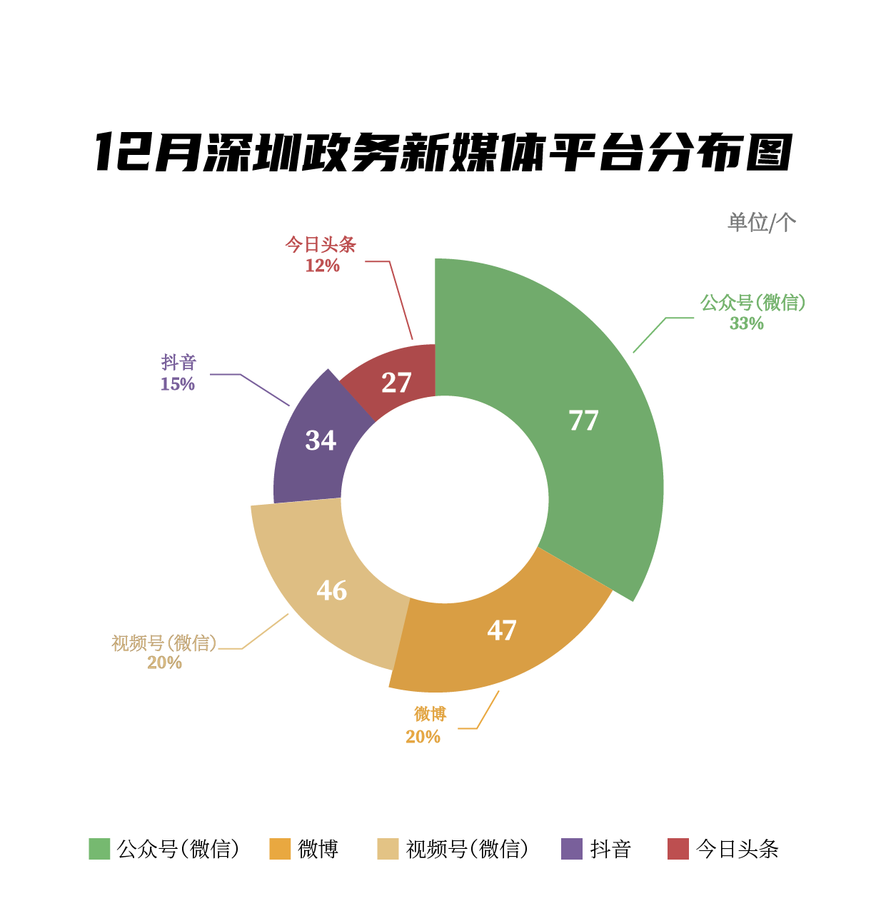 12月,市衛(wèi)生健康委、龍崗區(qū)、福田區(qū)、南山區(qū)、市氣象局、深汕特別合作區(qū)、光明區(qū)、市消防救援支隊(duì)、龍華區(qū)、市應(yīng)急管理局榮登“深圳優(yōu)秀政務(wù)新媒體矩陣”榜單。12月,市衛(wèi)生健康委持續(xù)發(fā)力抖音等平臺,鞏固榜首地位,展現(xiàn)了政務(wù)宣傳賬號的蓬勃活力與創(chuàng)新能力,贏得了廣泛關(guān)注。龍崗區(qū)新媒體矩陣則在微信公眾號、抖音兩大平臺上取得了亮眼成績。福田區(qū)新媒體矩陣通過精心策劃與運(yùn)營微信公眾號平臺,成功吸引了大量忠實(shí)讀者,最終在《深圳優(yōu)秀政務(wù)新媒體矩陣》榜單中榮獲第三名。同時(shí),南山區(qū)、市氣象局、深汕特別合作區(qū)等新媒體矩陣在也在各自領(lǐng)域內(nèi)大放異彩,在榜單中名列前茅。