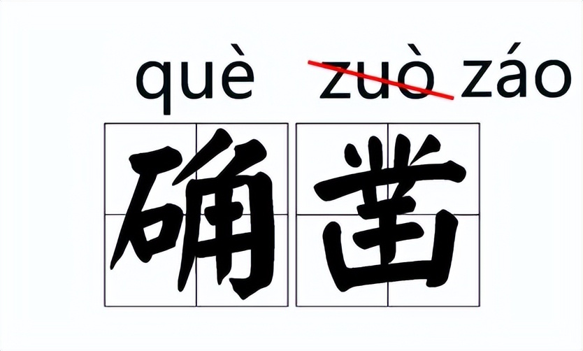確鑿(què záo),原讀音:確鑿(zuò)。后因從俗改為:確鑿(záo)