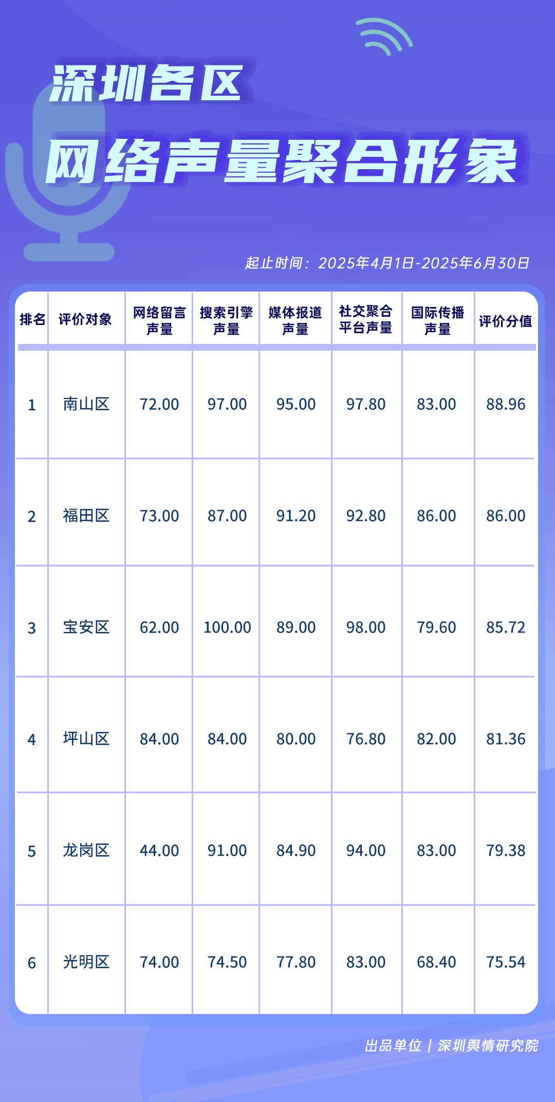 4-6月,各區各單位網絡形象建設取得了哪些成效?《深圳各區各單位網絡形象建設榜》帶您了解。本期榜單數據統計時間范圍為2025年4月1日至6月30日。