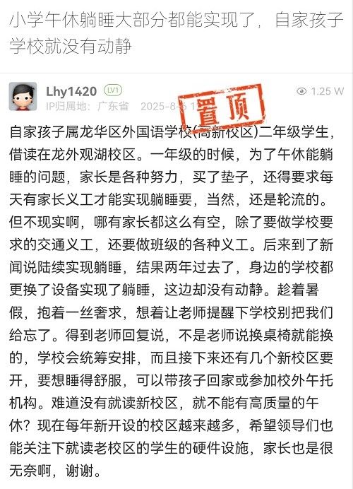 12. 帖文《小學午休躺睡大部分都能實現了,自家孩子學校就沒有動靜》