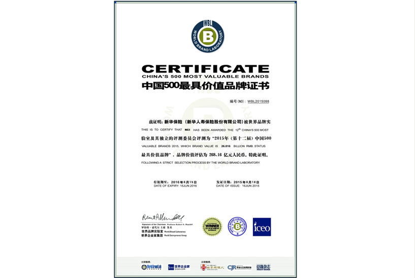 12月28日,由世界品牌實驗室主辦的2015年“中國品牌年度大獎”評選正式揭曉。新華保險再次獲頒2015年“中國保險行業(yè)十大影響力品牌”稱號。